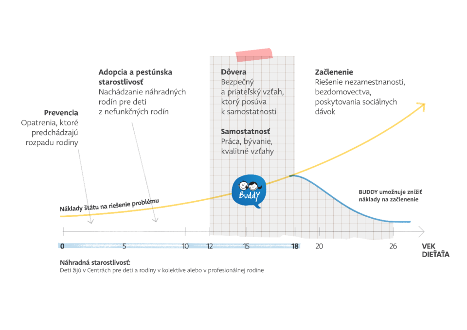 Dieťaťu tak často chýba stabilná vzťahová osoba – niekto, kto je tu len preň, kto ho bezpodmienečne prijíma a kto z jeho života neodíde s odchodom z inštitúcie. Práve tu vzniká priestor pre BUDDY dobrovoľníka. Nemusí byť dokonalý ani mať všetky odpovede. Stačí, že je prítomný, spoľahlivý a predvídateľný.